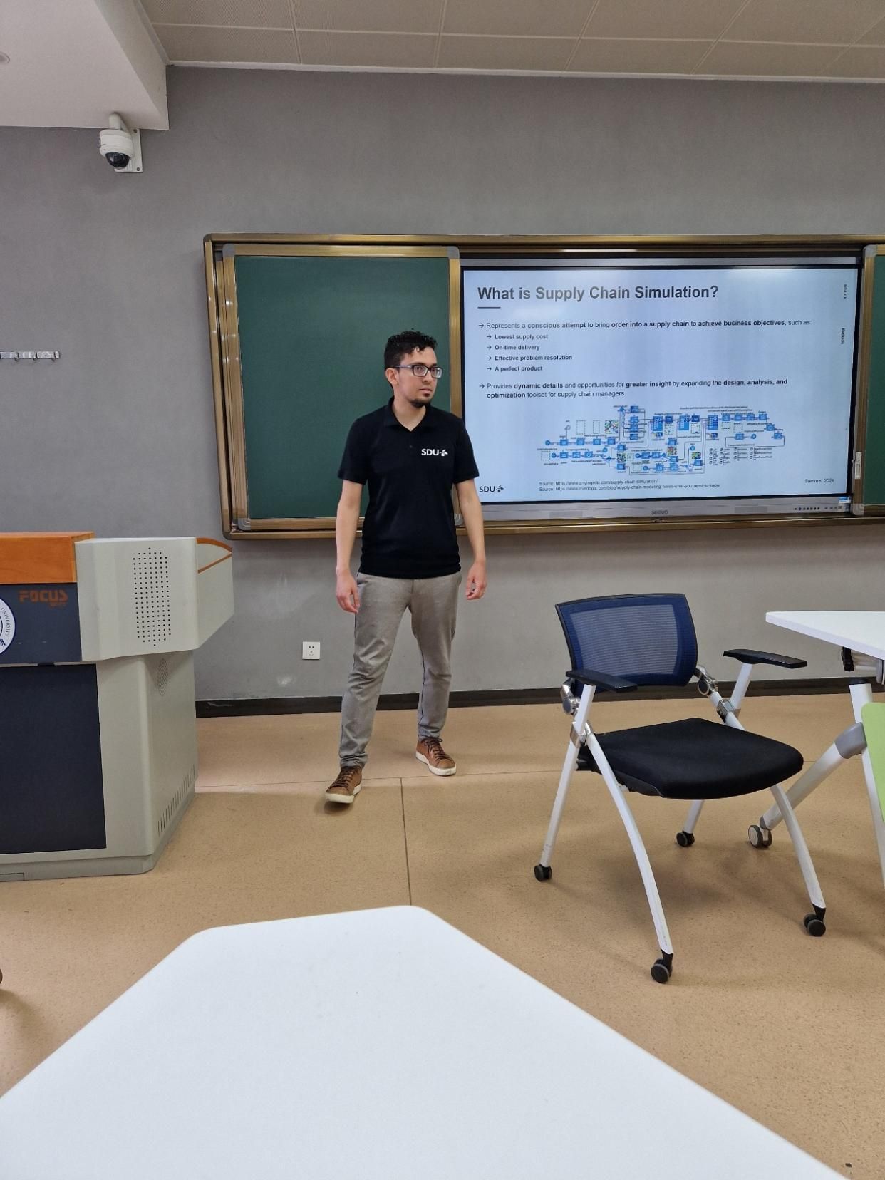 受郑晨老师邀请,供应链建模与仿真领域专家,南丹麦大学Elias Hans Dener Ribeiro da Silva教授来我校授课。课程名称为《供应链建模与仿真》,课程主要内容围绕供应链建模与仿真展开,重点关注如何利用模型和仿真工具来优化供应链的运作。教授详细讲解了供应链的各个环节和流程,并介绍了常见的供应链管理问题和挑战。学生们在课程中学习了建立供应链模型的基本方法,包括数据采集、模型设计、参数设置等;拓展了对供应链管理领域的知识视野,还掌握了实用的建模和仿真技能。这些知识和技能对于他们未来在供应链行业的发展将起到积极的推动作用。