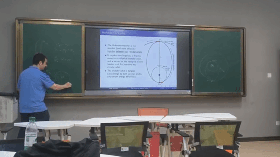 《科幻中的科学》课程从科幻作品中的大胆想象切入,讲解了宇宙空间中星体、飞行器的运行规律与背后的力学原理;讲解了三体问题、星际移民等科幻作品中频繁提及的概念背后的科学理论;以地球-火星模型为例讲解了行星间转移的运动学与力学问题。他不仅在讲解过程中注重师生互动,还通过引导学生积极发言和提问,激发学生们的学习兴趣和参与热情。Paolo 巧妙地将科幻作品与现实中的科学紧密结合,从电影和小说中的科幻场景出发,延伸扩展到现实中的航天问题。这种教学方法不仅有效地增强了学生对相关知识的理解,还激发了学生对科学探索的兴趣。
