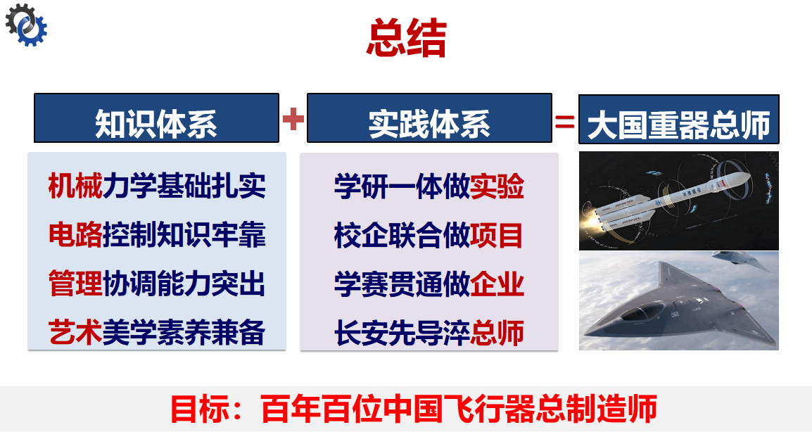 williamhill中国官方网站总结的总师人才培养三个环节、总制造师人才的“机-电-管-艺”四个素质,提出的“学研一体做实验、校企联合做项目、学赛贯通做企业、长安先导淬总师”的实践育人体系,获得院士和名师高度认可。学院凝练的“总师传承、名师传承、工匠传承”育人方法,在全国高校中独树一帜、特色鲜明。
