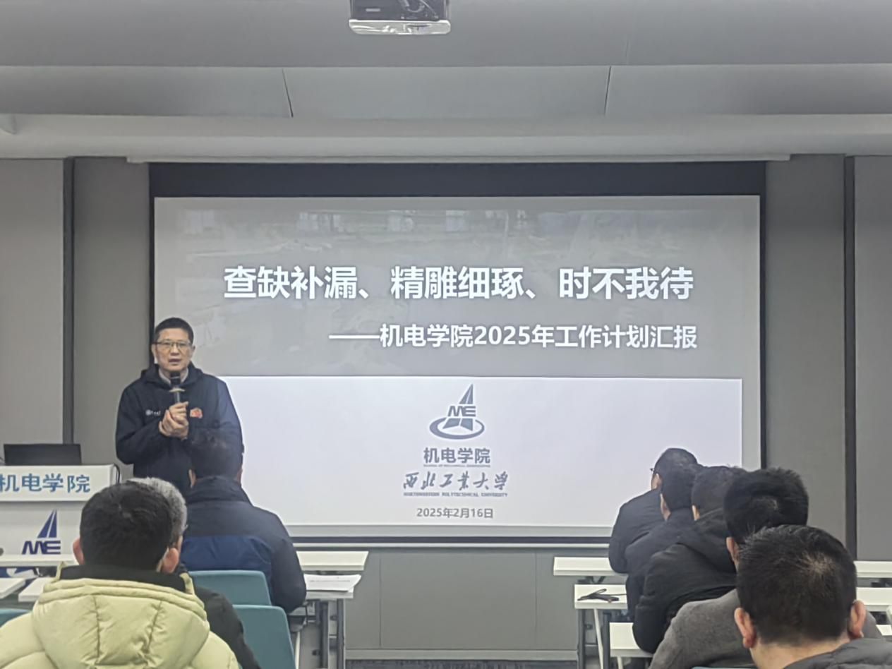 常洪龙向与会人员传达了李言荣书记、宋保维校长的讲话精神,并作题为《查缺补漏、精雕细琢、时不我待》的学院工作计划报告,简要回顾了2024年学院在人才培养的十二个“抓”、科研工作的五个“抓”、人才工作的三个“心”,并全面分析了学院2025年的重点工作思路,从人才培养、高水平师资队伍建设、科研重大成果等方面提出了学院2025年重点工作的落实举措,希望全院师生在讲团结、树正气、谋大事、创一流的良好氛围下持续推进学院高位运行、高位发展。