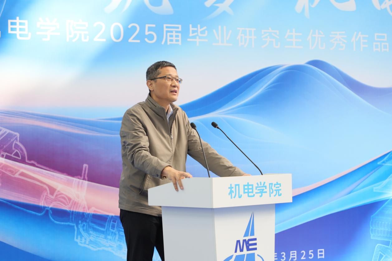 院长常洪龙为典礼作开篇致辞。他首先向全体毕业生致以诚挚的祝贺和美好的祝愿,并向辛勤培育学子的导师们表示崇高的敬意和衷心的感谢。他殷切寄语毕业生,希望机电学子始终秉持着志存高远、脚踏实地的精神,抓住依托人工智能的发展机会,将个人理想抱负与国家发展战略紧密结合,在智能制造、航空航天等领域勇攀高峰。“愿你们以匠心筑梦,以创新领航,努力成长为推动时代发展的栋梁之才!”