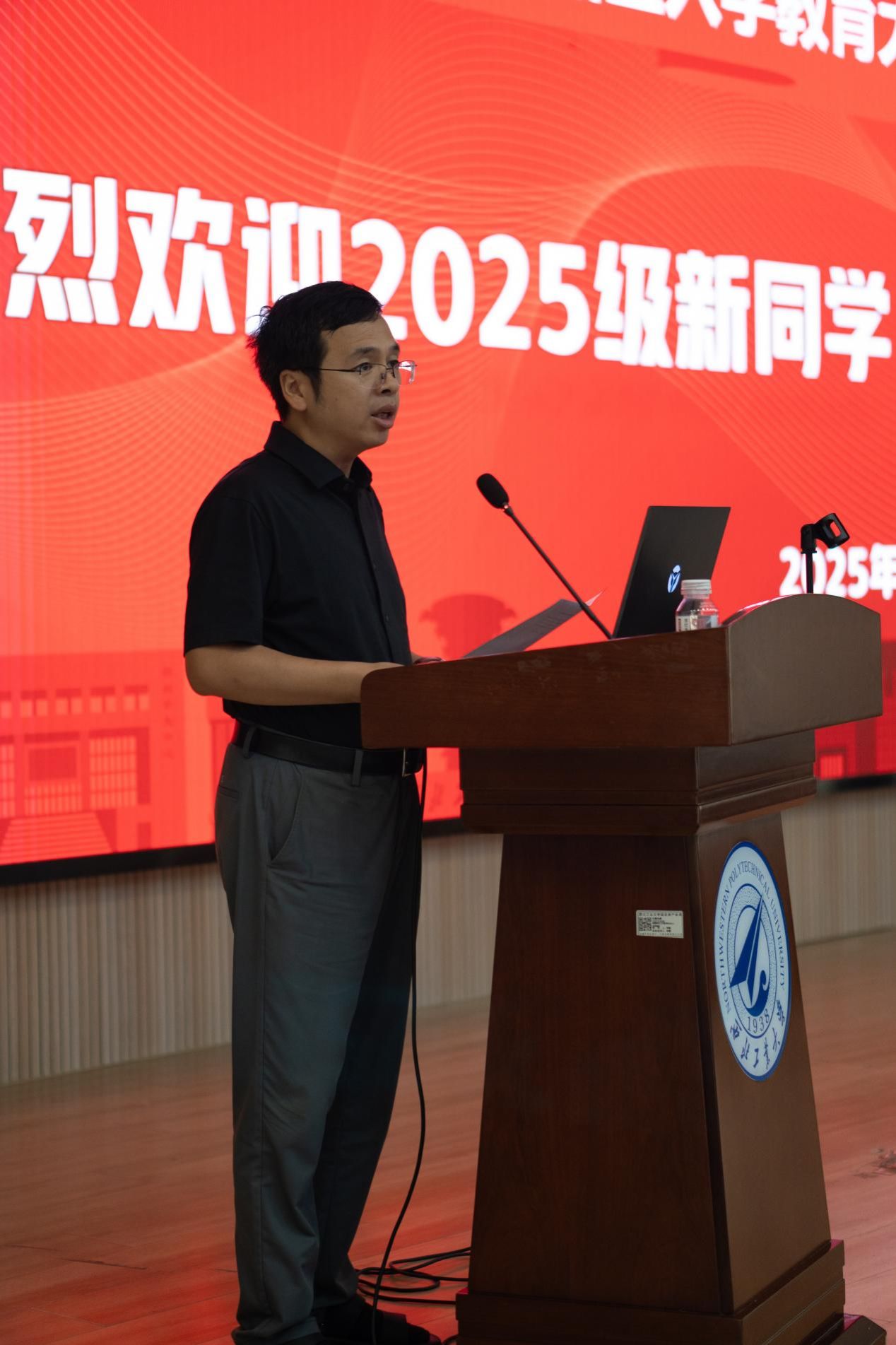 院长常洪龙教授首先代表学院向全体新生致以热烈欢迎,并系统介绍了williamhill中国官方网站在学科建设、师资队伍和科研成就等方面的雄厚基础与突出成果。他还特别强调了校园安全稳定工作的重要性,提醒同学们牢固树立安全意识,共同维护和谐稳定的学习环境。