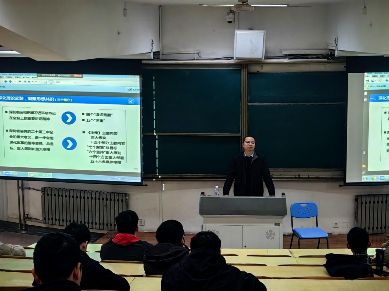 马克思主义学院陈诚平副教授以《深入理解中国式现代化的基础性、战略性支撑——学习党的二十届三中全会精神》为题,阐述了我国新时代下教育、科技、人才一体化的战略布局,强调党的二十届三中全会指出,“教育、科技、人才是中国式现代化的基础性、战略性支撑。号召同学抓住青春的大好时光,珍惜社会和国家给予的良好学习条件,不断提高自身能力,将自身命运同国家命运联系起来,为中国式现代化的推进贡献出自己的一份力。