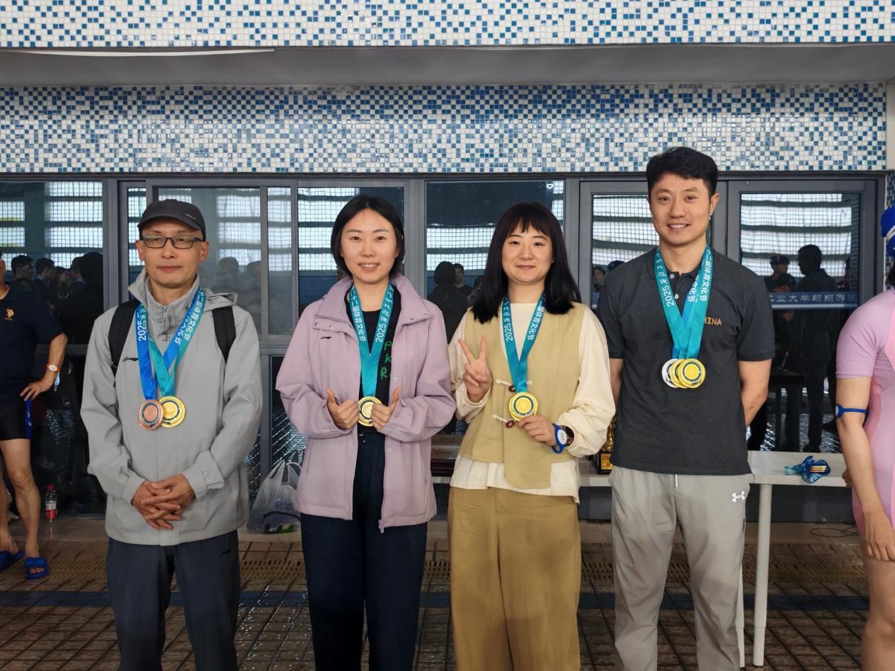 在游泳比赛中,williamhill中国官方网站游泳健儿们如水中蛟龙,在泳池中奋勇争先。他们凭借精湛的泳技和默契的配合,在 4×50 米接力项目中一路领先,最终以绝对优势勇夺冠军,为学院赢得了荣誉。付佳伟老师更是表现出色,在 45 岁以下组 50 米自由泳中一路领先,以出色的成绩夺得冠军,在 50 米蛙泳中又斩获第 2 名;李启鹏老师也在 45 岁以上组 50 米自由泳中脱颖而出,获得第 3 名。经过全体游泳队员的共同努力,williamhill中国官方网站最终荣获教职工游泳项目总成绩第 1 名,这一成绩的取得离不开每一位参赛队员的刻苦训练和不懈努力,他们用实际行动诠释了机电人对体育精神的追求和对卓越的执着。