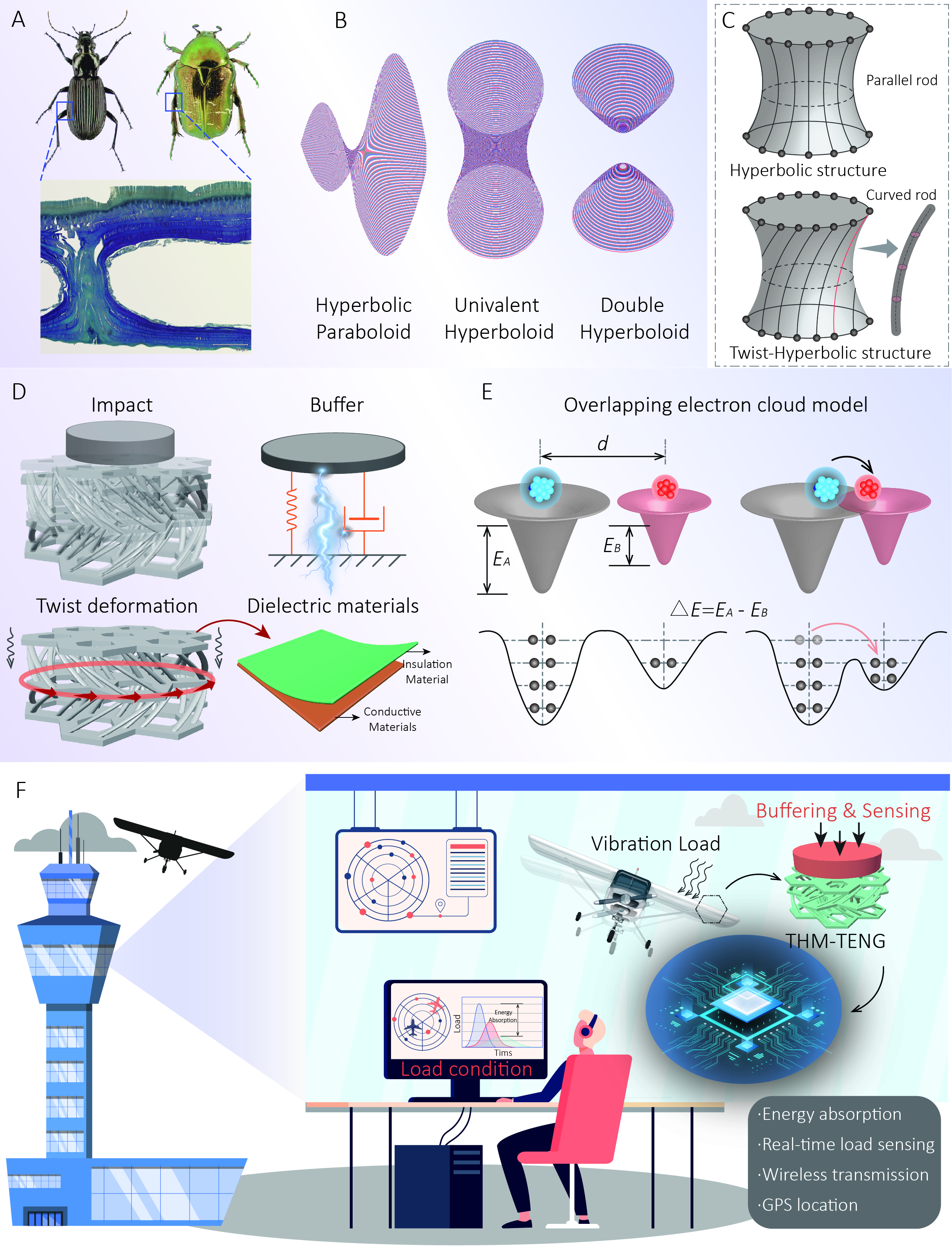 近日,williamhill中国官方网站齐乐华教授团队在兼顾冲击防护与自供能传感的力学超结构方面的研究取得新进展。相关成果《Bioinspired Twist-Hyperbolic Metamaterial for Impact Buffering and Self-Powered Real-Time Sensing in UAVs》发表在Science 子刊《Science Advances》上。williamhill中国官方网站晁许江副教授为第一作者,柔电院梁飞副教授、齐乐华教授和中科院王中林教授为通讯作者。